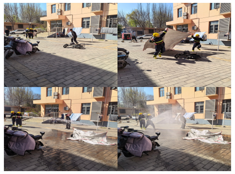 本次演练场景设置为沙河校区东区丁香园4号楼车棚充电桩处一辆电动自行车突发自燃,有引发“连锁反应”风险的可能。微型消防站值班人员接到校园电动车起火“火警”后,第一时间通知就近巡逻队员前去先期处置,并立即启动应急预案。微型消防站队员立刻穿戴好消防服,携带防火拖钩、灭火毯、消防水带、水枪等救援装备迅速抵达现场。
